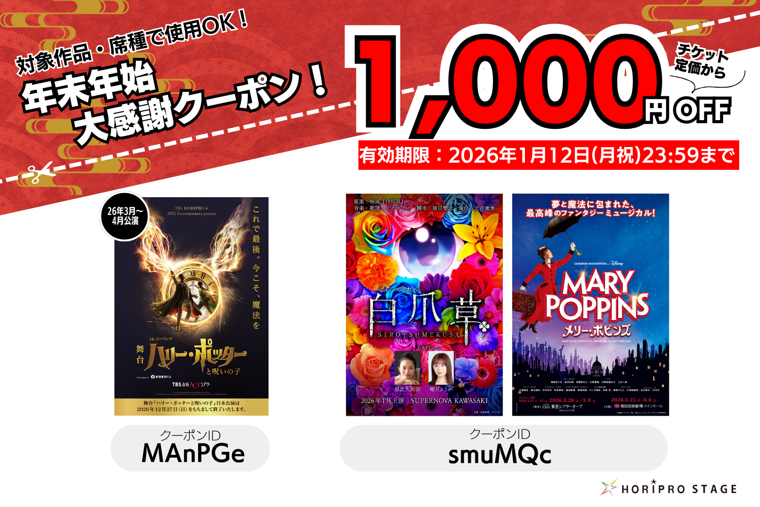 ※舞台『ハリー・ポッターと呪いの子』は26年3月・4月公演分が対象となります。