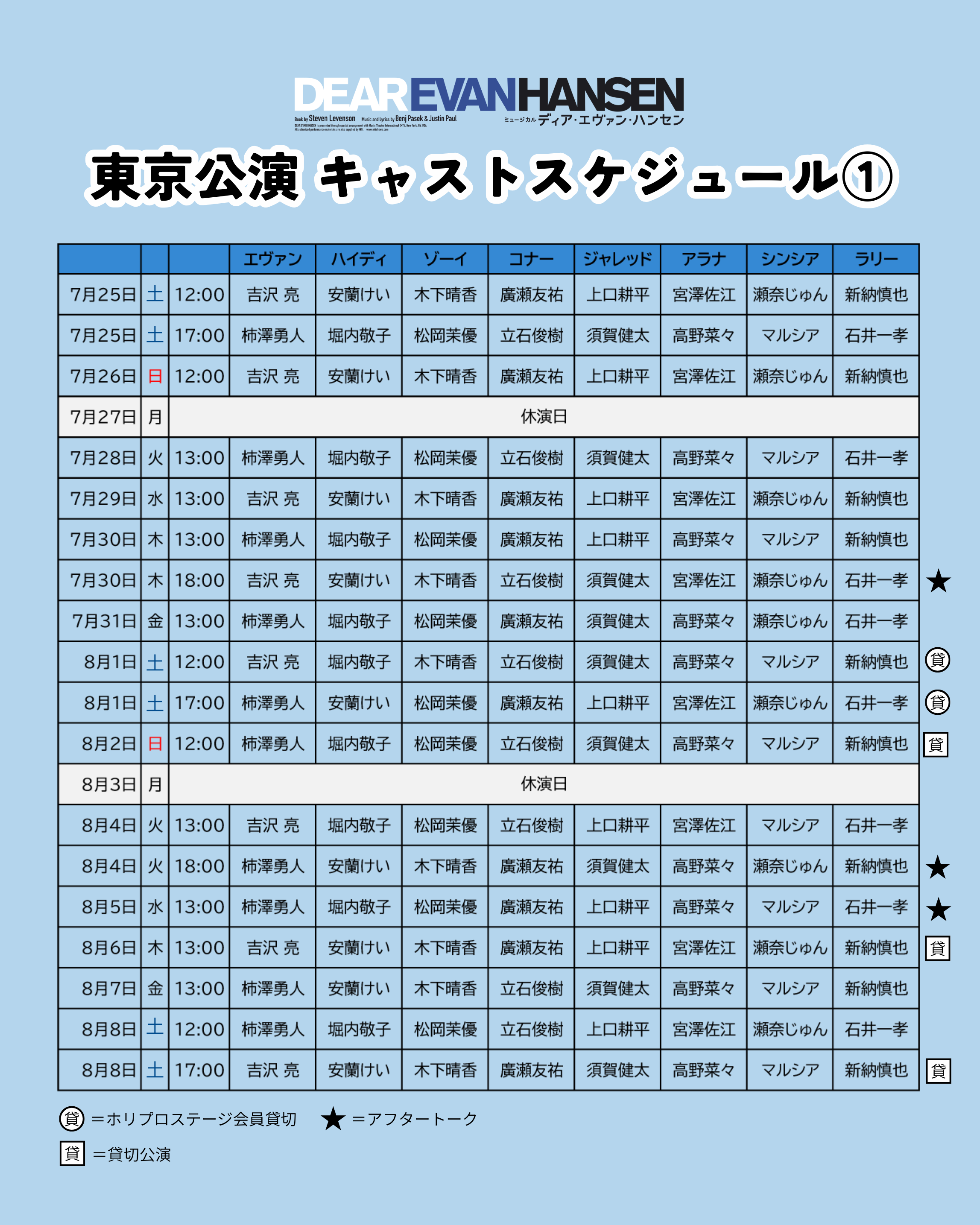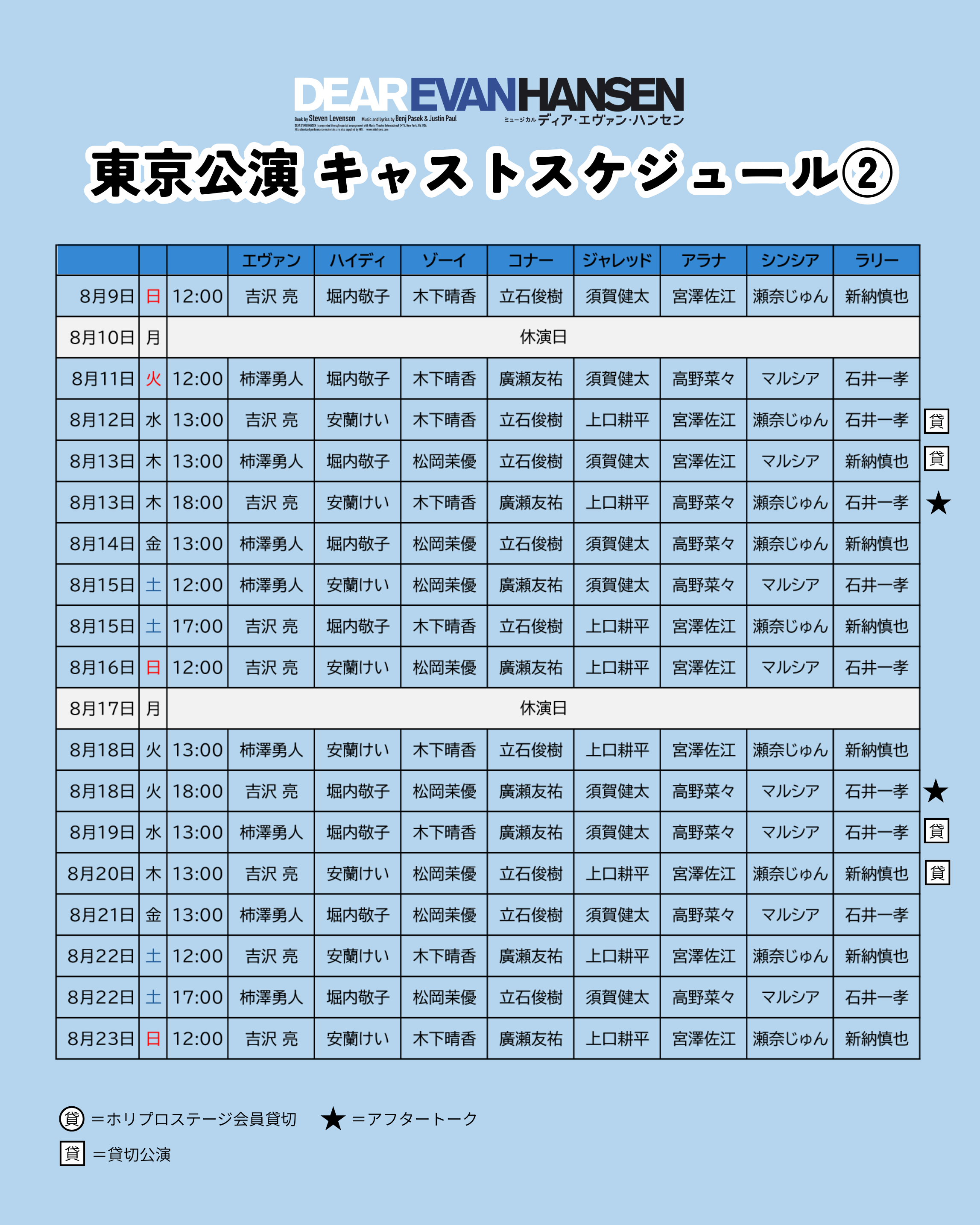 ミュージカル『ディア・エヴァン・ハンセン』東京公演キャストスケジュール