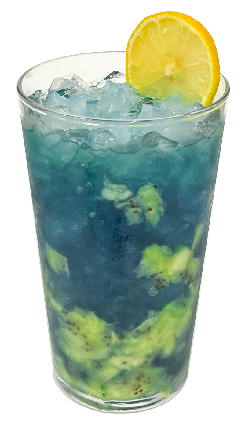 天文学を追い求めた人々と彼らが見上げた満点の星空をイメージしています。一等星をナタデココ、くず星をキウイ、惑星を輪切りレモンで表現し、カクテル全体で漆黒の夜空で輝く満点の星を描いています。