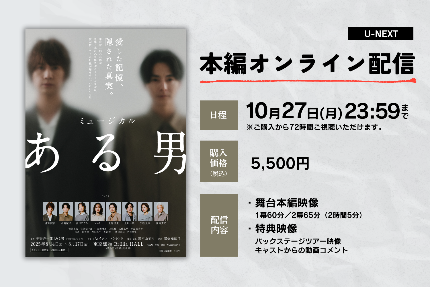 ミュージカル『ある男』舞台本編映像が配信決定。U-NEXTにて、9月28日(日)から10月27日(月)まで配信!