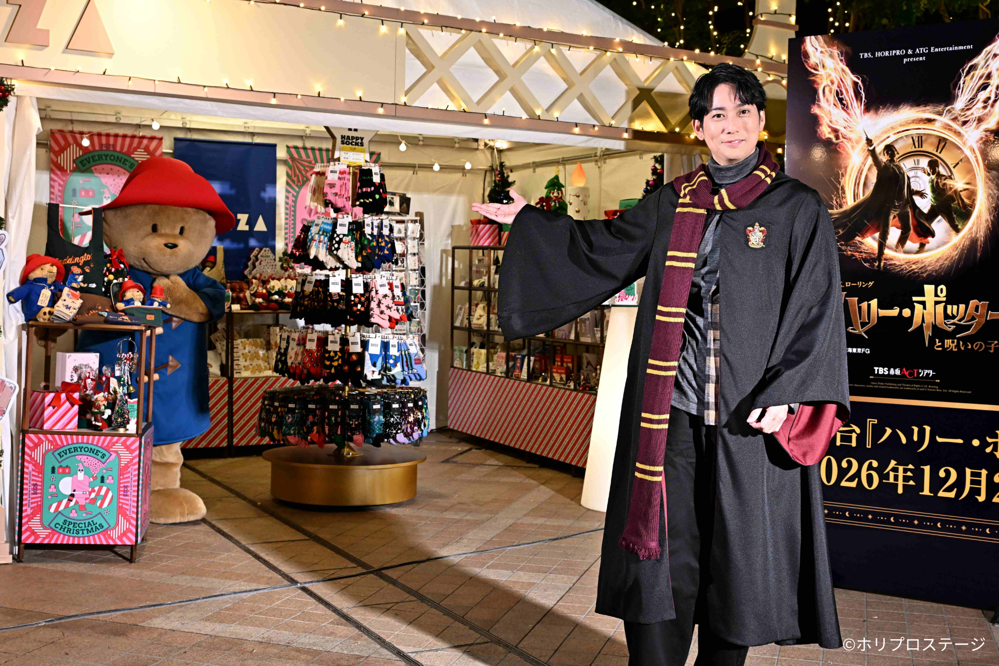 COREDO室町テラスの大屋根広場ではイルミネーションがキラキラ輝き、クリスマスマーケットやキッチンカーが出ていて華やかさ満点!クリスマスの到来を味わえる、幸せな空間になっていた。パディントン™をモチーフにしたこのイベントに、舞台『ハリー・ポッターと呪いの子』でハリー・ポッター役を務める平岡祐太が来訪した。皆さんご存じ「ハリー・ポッター」シリーズではロンドンのキングス・クロス駅が魔法界の入り口となる重要な役割を果たしている。一方、くまのパディントン™はロンドンのパディントン駅で拾われたことからその名が付けられた。ロンドン繋がりの両者が日本橋で出会うとは、なんて不思議で素敵な話でしょう!