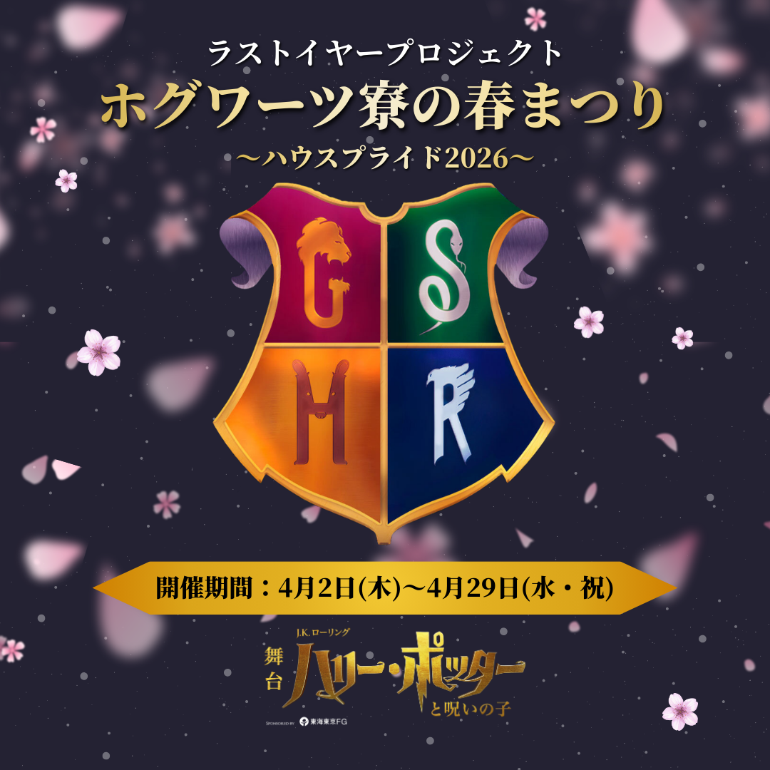 今年もハウスプライドの開催が決定!舞台『ハリー・ポッターと呪いの子』日本公演では、今年が最後の開催となります。今年は「春」をテーマに、日本を象徴する「桜」を取り入れた特別な劇場内装飾で皆様をお迎えいたします。魔法の世界と日本の春が融合する、最後のハウスプライドをぜひ劇場でお楽しみください。その他、イベントの具体的な内容については、公式サイトおよび公式SNSにて順次お知らせいたします。