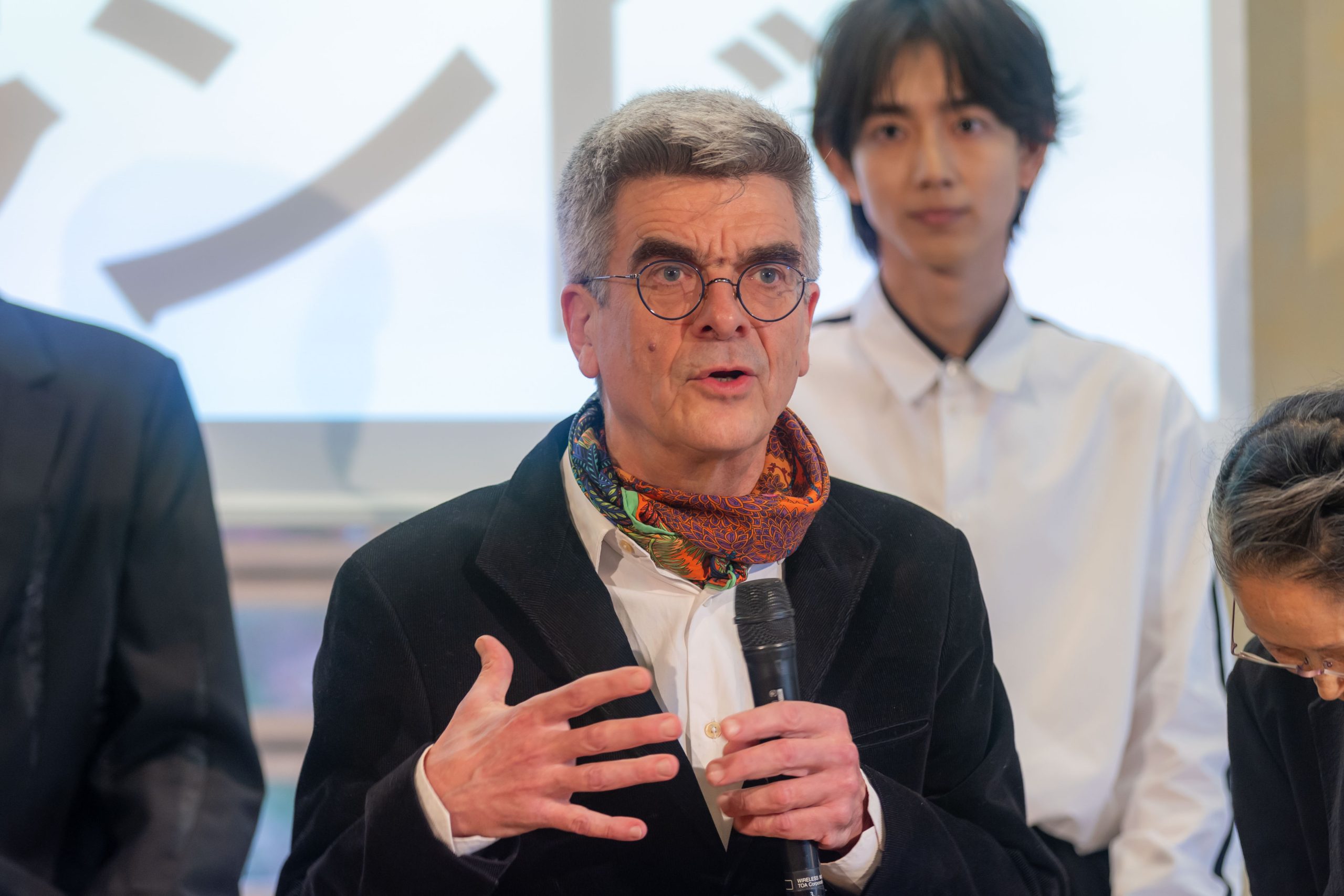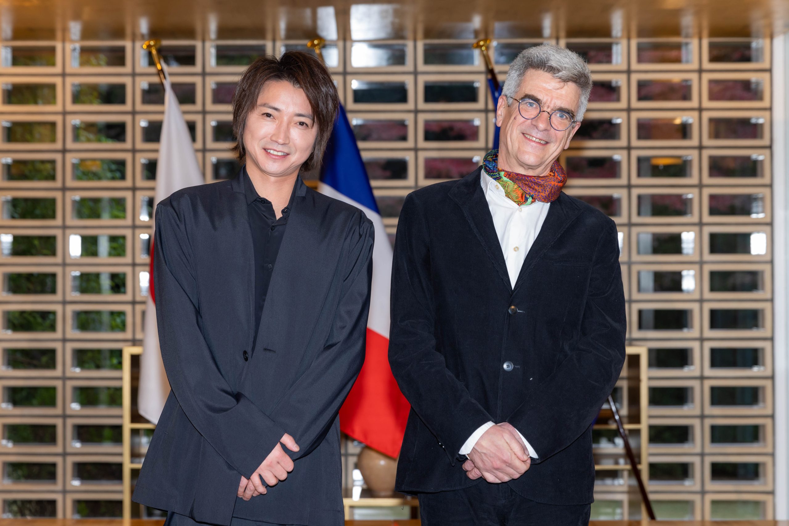 フランス大使公邸に来ることができ非常に嬉しく思っております。僕としましては、村上春樹さんの作品、そしてフランス・パリ公演も初めてのことなので、この世界的文学作品をフランスの方たちに受け入れてもらえるように芝居を作っていきたいと思います。「私」と、「僕」、「影」と二つの世界が同時に進行して、失ったものを求めていくという作品です。演出のフィリップさんの期待に応えられるよう必死に稽古し、良いものを作り上げていこうと思っております。まだ試行錯誤しているのですが、フィリップさんも稽古初日に仰った「良い作品にしたい」、その一つの目標に向かって、世界の人たちに届けられる良い芝居ができるように、頑張っていきたいと思います。