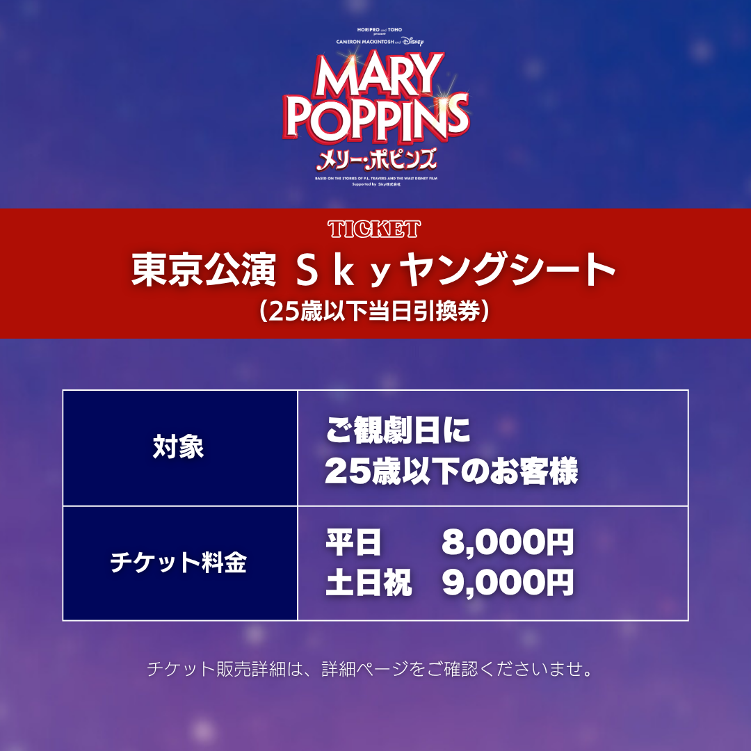 東京公演では『メリー・ポピンズ』のチケット(東京・大阪)をお持ちのお客様のみ、上演中に物販をご利用いただけます。