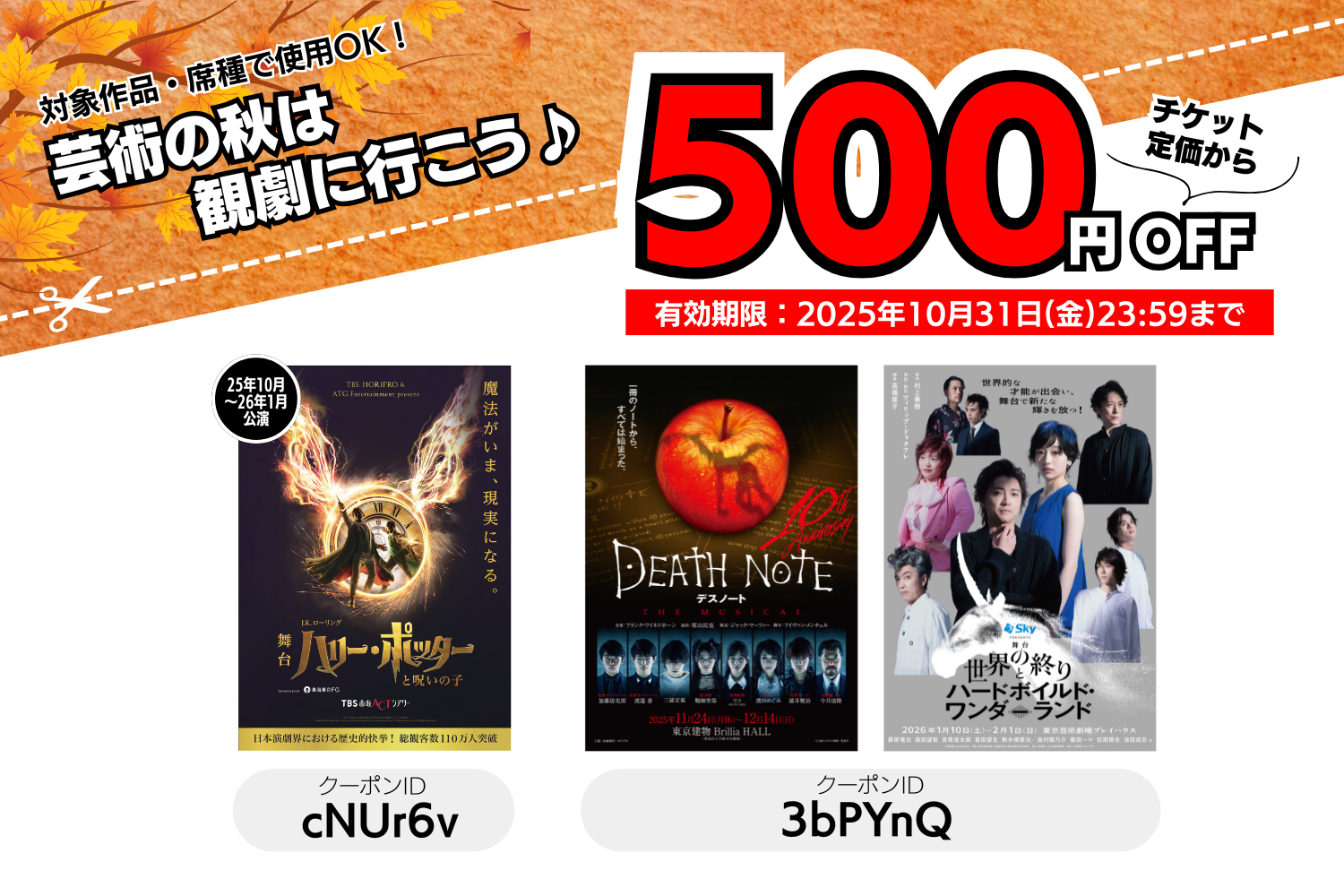 ※舞台『ハリー・ポッターと呪いの子』は25年10月~26年1月公演分が対象となります。